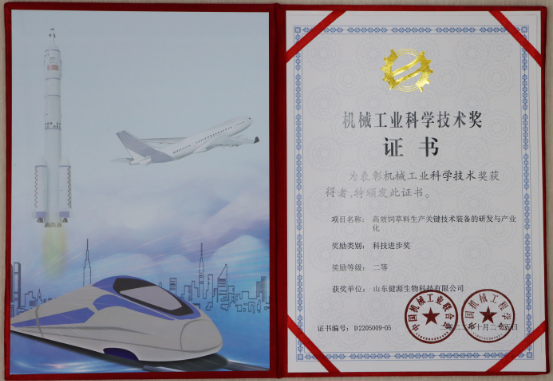祝賀山東健源生物參與完成的《高效飼草料生產(chǎn)關(guān)鍵技術(shù)裝備的研發(fā)與產(chǎn)業(yè)化》項目榮獲2022年度機械工業(yè)科學(xué)技術(shù)獎科技進步獎二等獎
